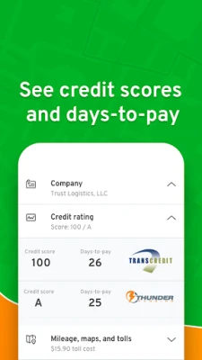 - Truck loads display Credit Scores from Thunder Funding and TransCredit