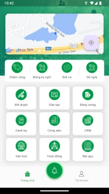 - Đăng nhập tài khoản - Chấm công điểm danh ngày làm việc - Đăng ký đề nghị, đổi ca, đào tạo - Đăng ký nghỉ phép, nghỉ có lương, nghỉ không lương