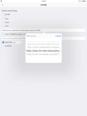The free product scanner. Scan barcodes from any products. Inform about the best price of the product, about ingredients, allergens, etc. Use the information to get best prices in stores while shopping. Scan Product Code (EAN / UPCs) and opens a corresponding search engine that is adjustable. The special feature here is that any product search services can be freely: General search engines like google, bing or baidu, shopping portals, the Amazon or Alibaba, consumer sites like code check or any other Web site. Furthermore, also QR codes are supported and it is the barcode type displayed which is the barcode.