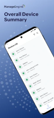 With the Mobile Device Manager Plus app, you can stay informed about all your managed devices, and view summaries of devices' network information, OS, memory usage, battery level, apps, and much more.