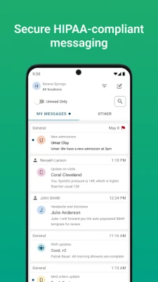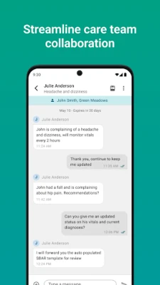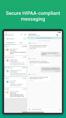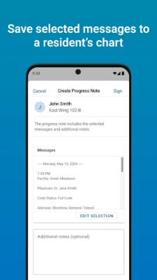 Key benefits include: · enhanced communication and collaboration between care team members. · faster response times between healthcare providers through resident-specific or general conversations. · participation in HIPAA-compliant resident-specific and general conversations. · access to company directory to search contacts.